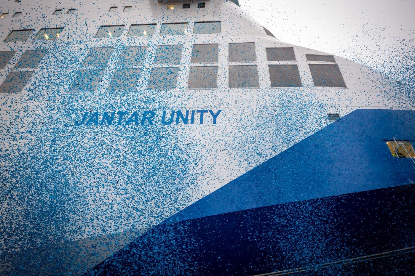 Uroczystość przy Bulwarze Chrobrego w Szczecinie symbolicznie zakończyła wieloletni proces realizacji jednej z najważniejszych inwestycji w polskiej żegludze promowej. Jantar Unity wkrótce rozpocznie regularne rejsy na południowym Bałtyku obsługując połączenia między Polską a Skandynawią.
